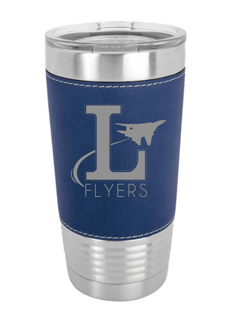 20oz stainless steel blue leather wrapped tumbler – featuring double-wall vacuum insulation with a clear sliding lid. Fits in a cup holder and should be hand washed. You can choose the Lake Baseball logo or the Lake Flyers logo. There is also an option to customize the back with a name and/or uniform number to support your favorite player.