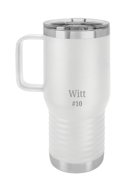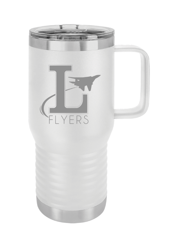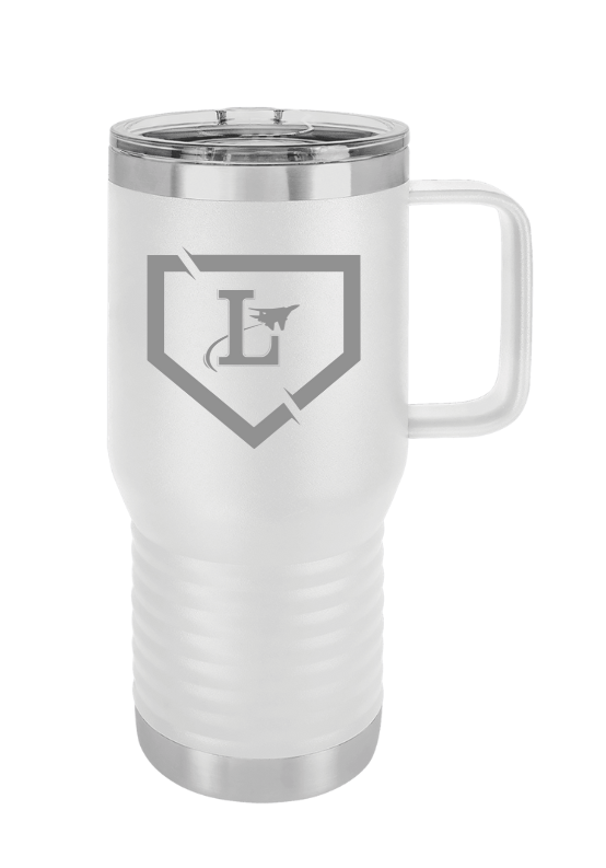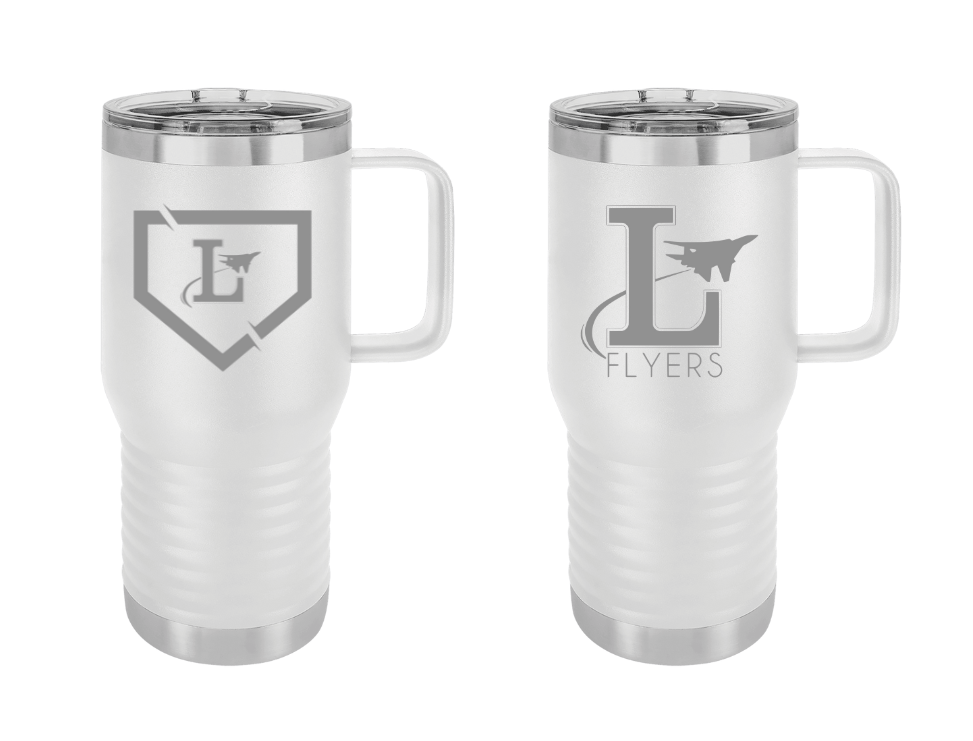 20oz stainless steel white travel coffee mug featuring double-wall vacuum insulation with a clear sliding lid. Fits in a cup holder and is dishwasher safe. You can choose the Lake Baseball logo or the Lake Flyers logo. There is also an option to customize the back with a name and/or uniform number to support your favorite player.