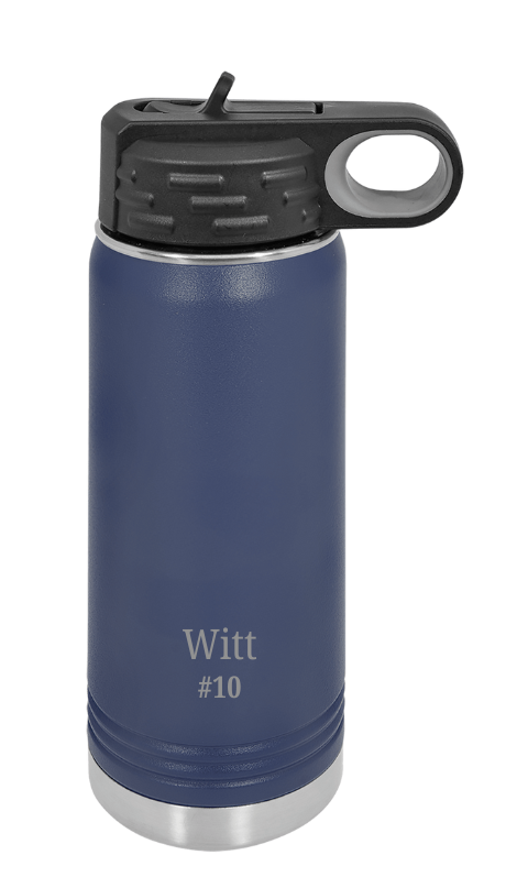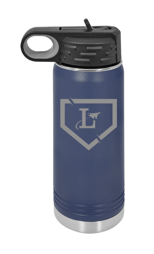 32oz stainless steel navy water bottle featuring double-wall vacuum insulation with built in straw in the lid. When closed the water bottle is leak proof. This does NOT fit in a cup holder but is dishwasher safe. You can choose the Lake Baseball logo or the Lake Flyers logo. There is also an option to customize the back with a name and/or uniform number to support your favorite player.