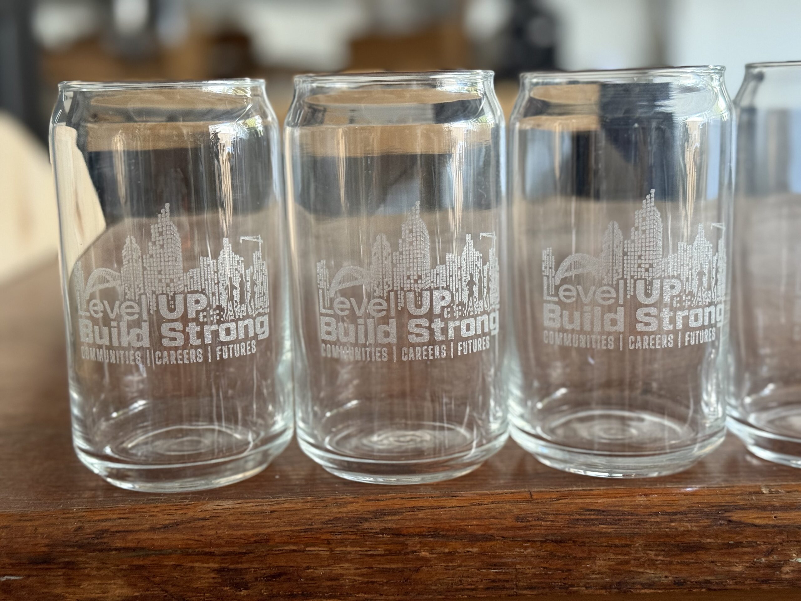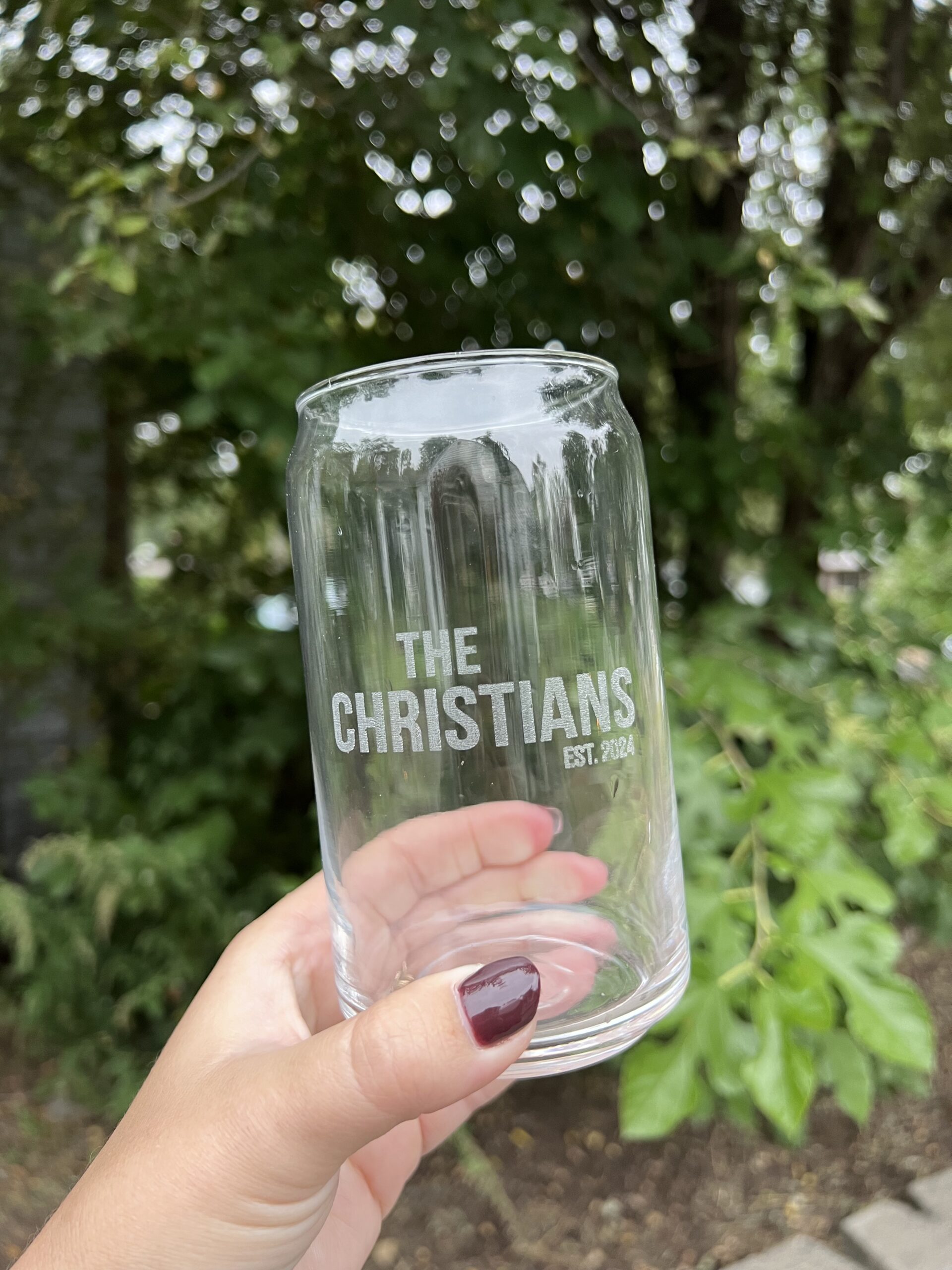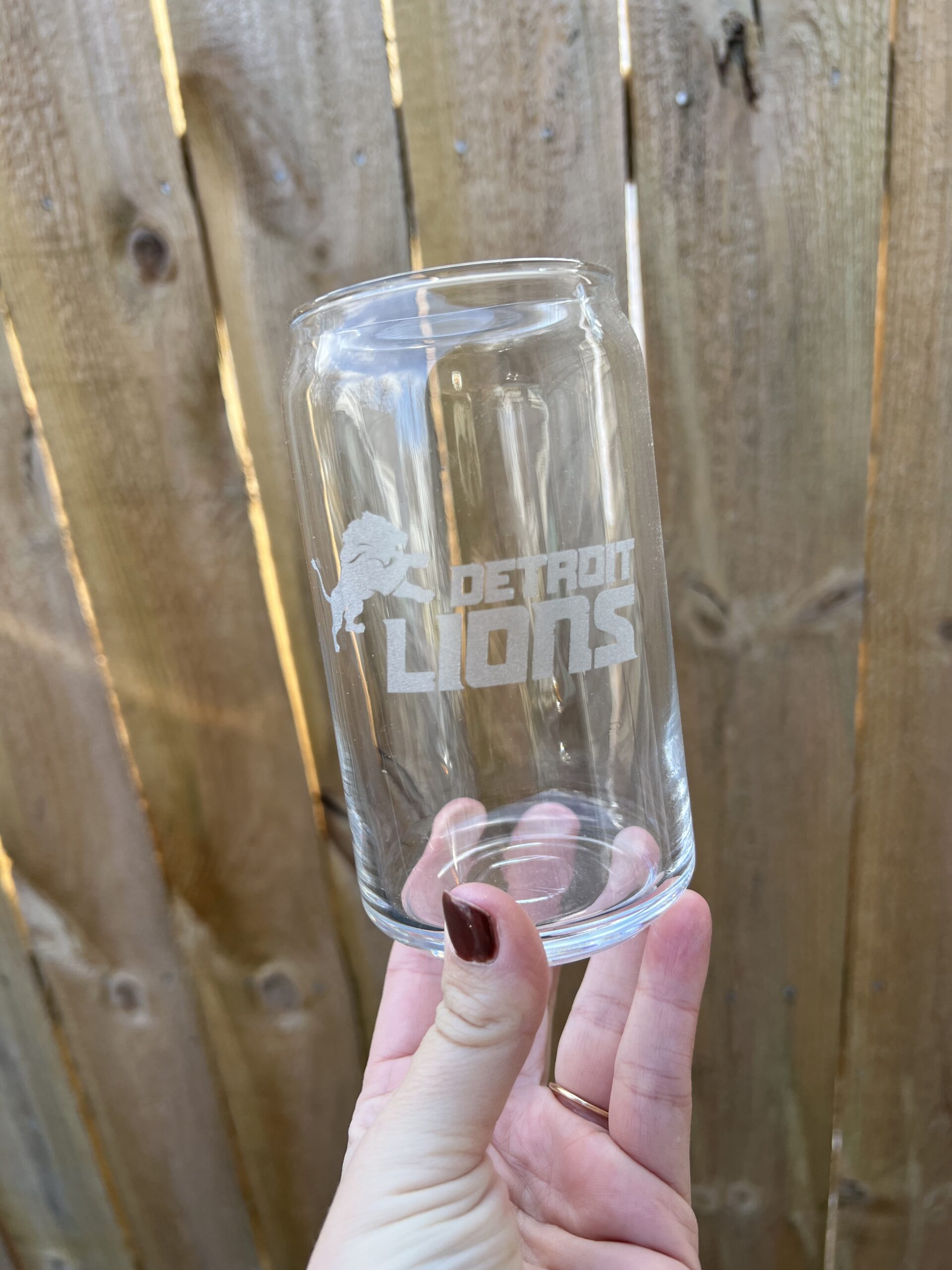 16oz can shaped glass. 5 1/4″ (H) x 3″ (Diameter).