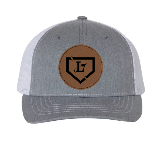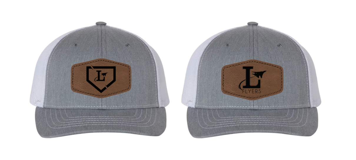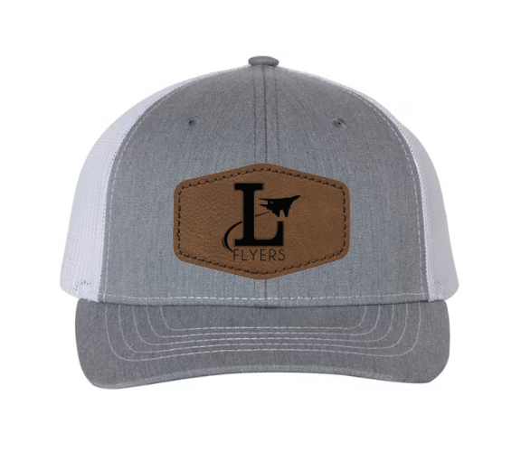 Richardson brand grey/white snapback adjustable hat. You choose between the Lake Baseball logo or the Lake Flyers logo as well as the hexagon or round shaped leather patch.