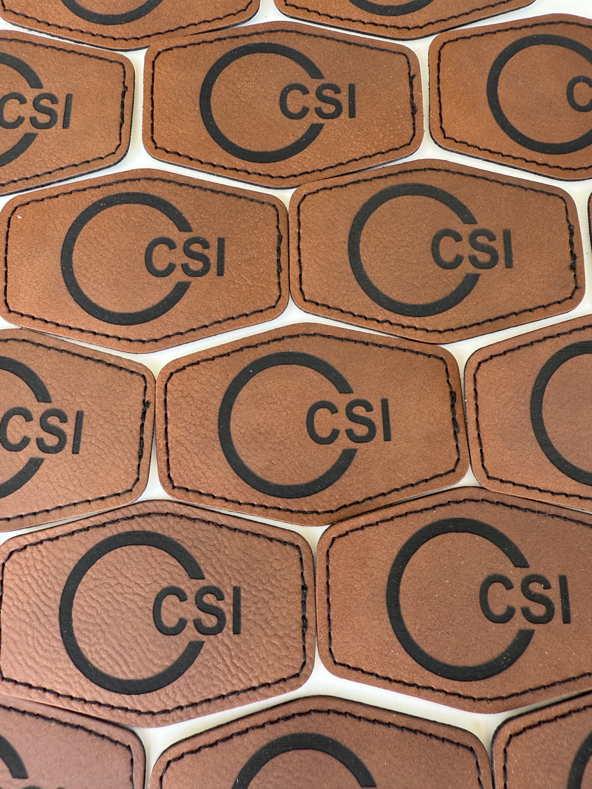 Rectangle, hexagon, or round patch engraved with your logo, design, etc.