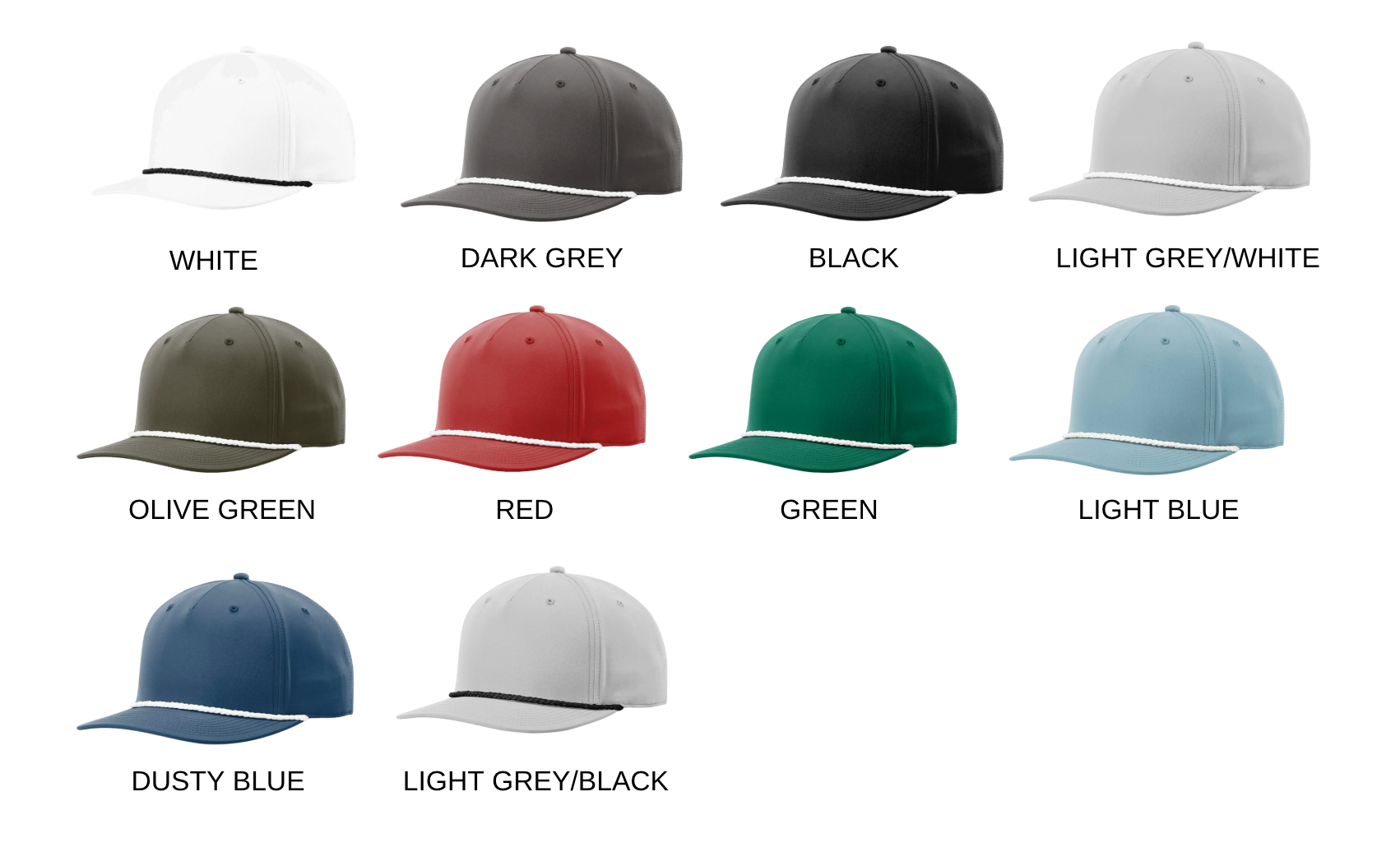 Richardson brand rope snapback adjustable hat. You choose the color, patch, & design engraved. The grey/white hat with a dark brown hexagon patch is shown in the main photo. The patch will be centered unless otherwise stated!