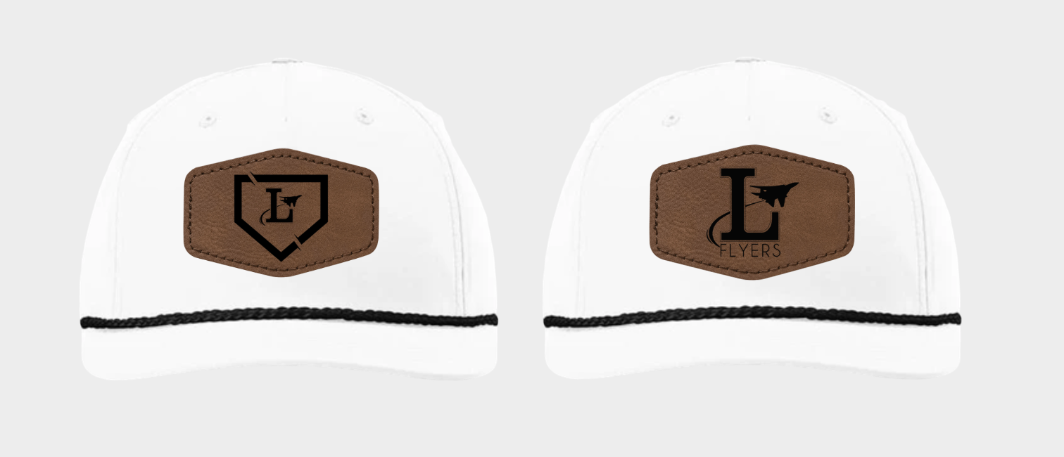 Richardson brand white rope snapback adjustable hat. You choose between the Lake Baseball logo or the Lake Flyers logo as well as the hexagon or round shaped leather patch.
