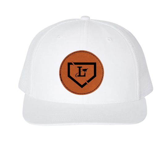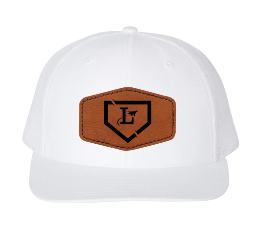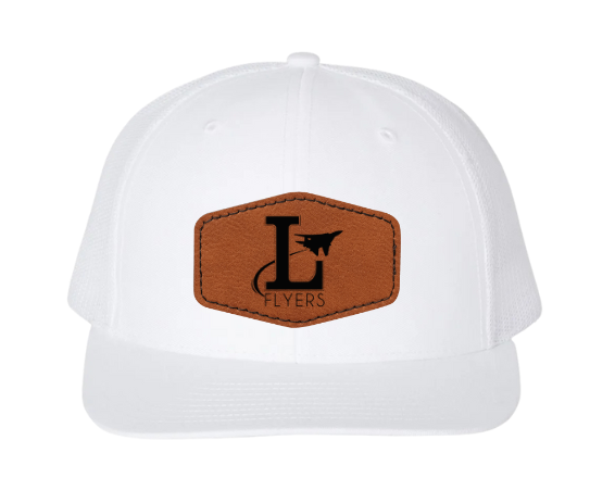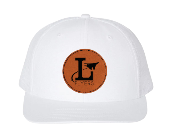 Richardson brand white snapback adjustable hat. You choose between the Lake Baseball logo or the Lake Flyers logo as well as the hexagon or round shaped leather patch.